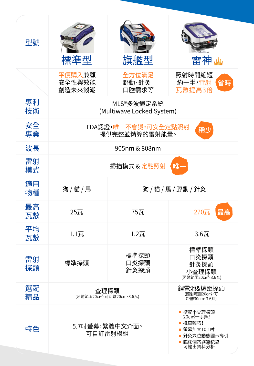 3種機型:標準型(25W)、旗艦型(75W)、雷神(270W)