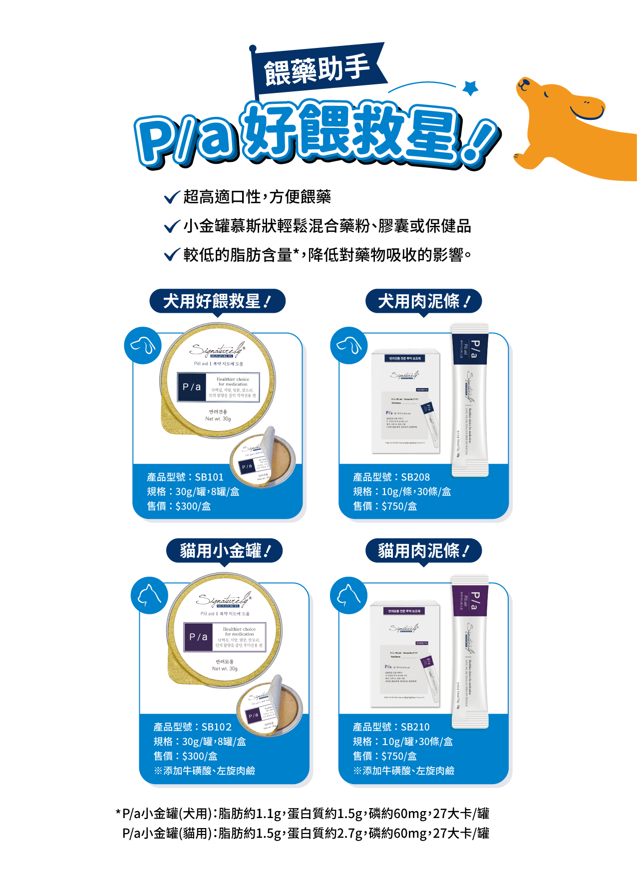 兩種包裝:小金罐、肉泥條